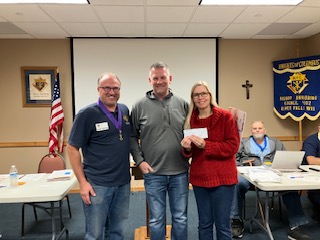 2024 – Brother Knight and ONP Board member Wes Kisting presenting a check from Council 4902 to Shelly from ONP to assist with their mission of assisting families in St. Croix and Pierce County.