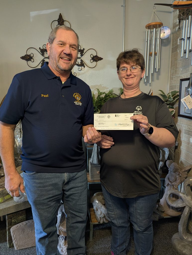 In 2022 the Council raised a total of $2,600 which was disbursed to three organizations. Below from left to right, Brother Bob Casey handing a check to Mark Inouye of the School District of River Falls. The Middle picture Brother Scott Lyndall handing a check to Kelly Zillmer of Have a Heart Farm. On the Right are participants of the Ellsworth Area Special Olympics who also received a check from the Council.